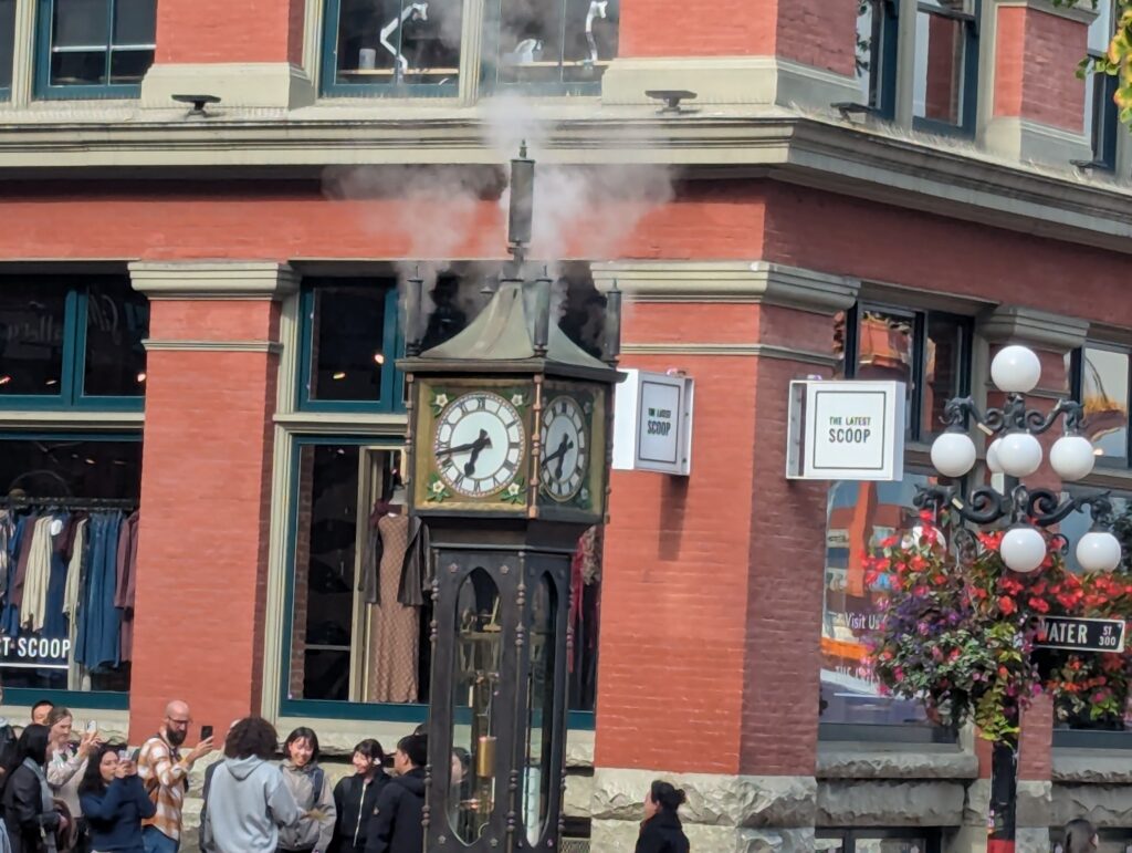 After arriving at our hotel, we found we were able to check in early. We then took a taxi to the Gas Town area of downtown Vancouver. We spent some time walking around and stopped at a coffee shop to do a bit of people-watching.