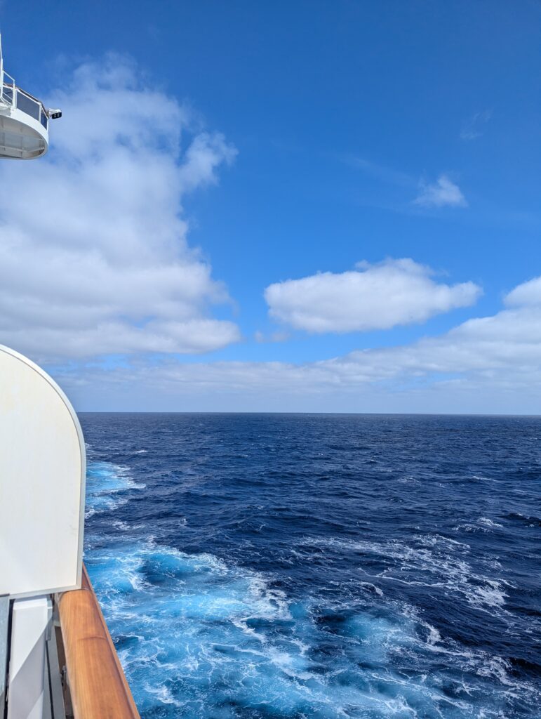 Five sea days coming and going. I have done five sea days before, but I’ve never had ten of them on the same cruise. I’m going to try to keep my exercise level up to at least slow down the inevitable weight gain. I’m guessing I’ll be ready to enjoy some time on land after that many days at sea. I’ll provide updates as we find land or something meaningful happens on the boat.